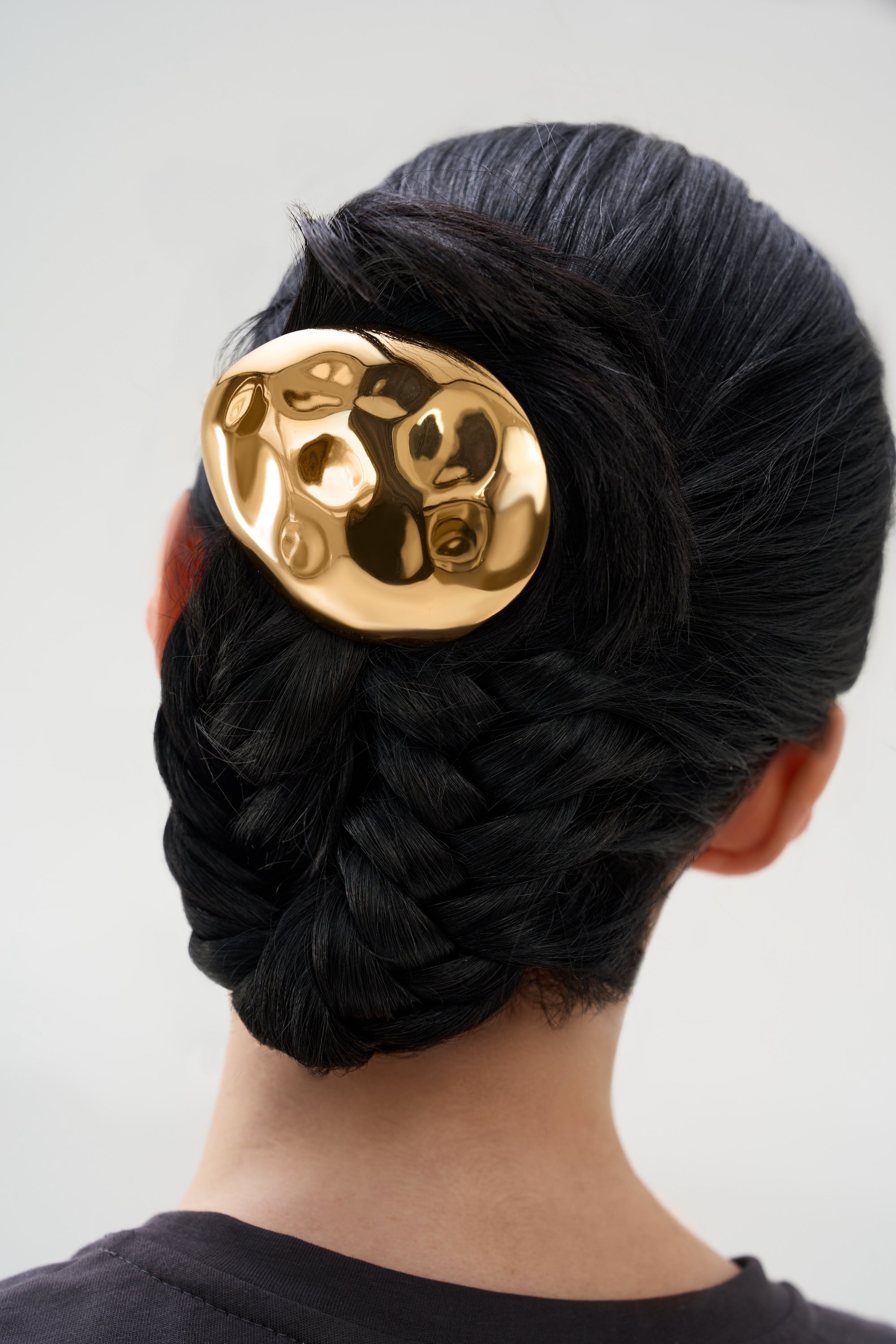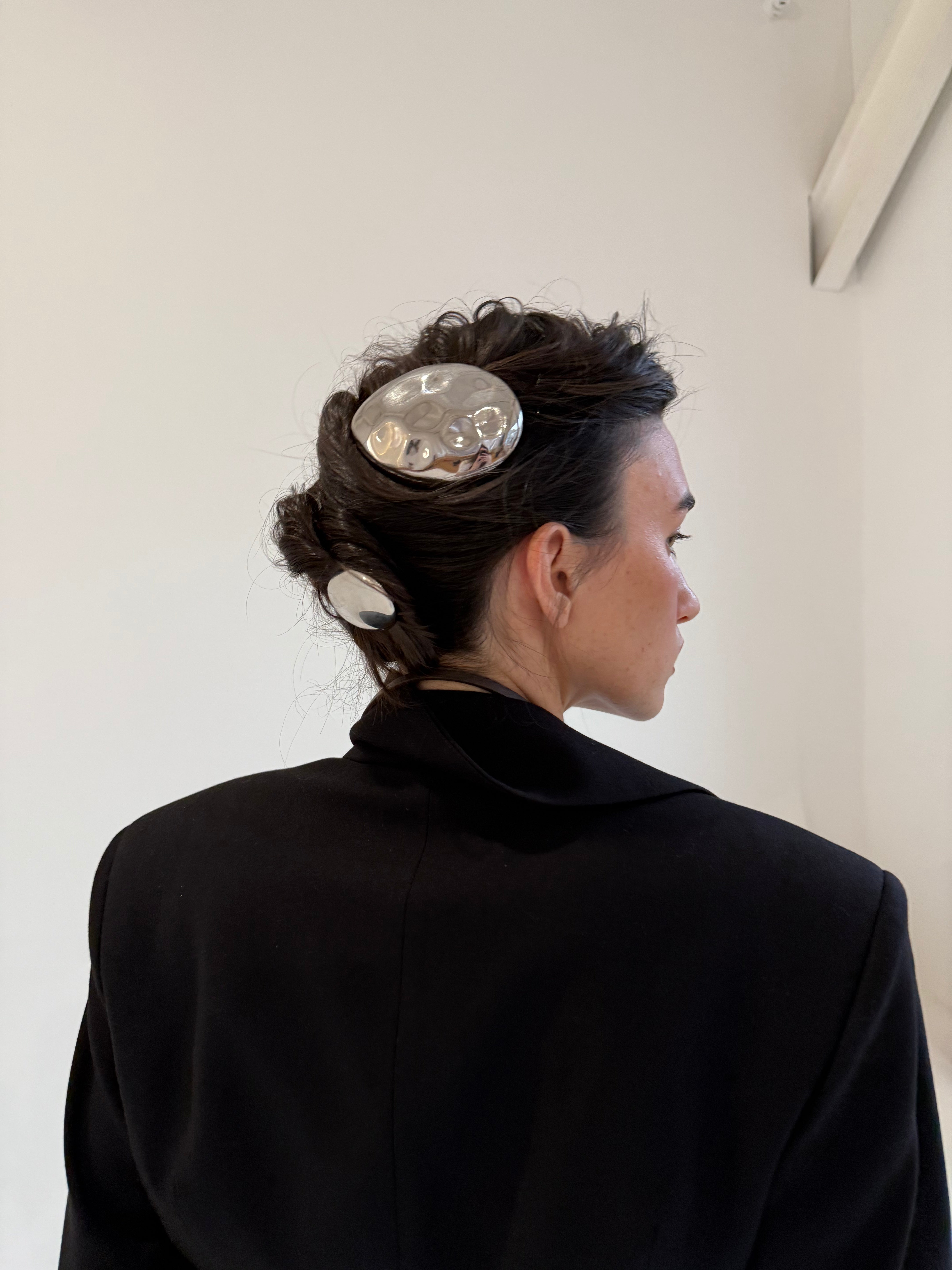 A large unique egg shaped hair barrette, that is more hair jewelry than hair accessory.