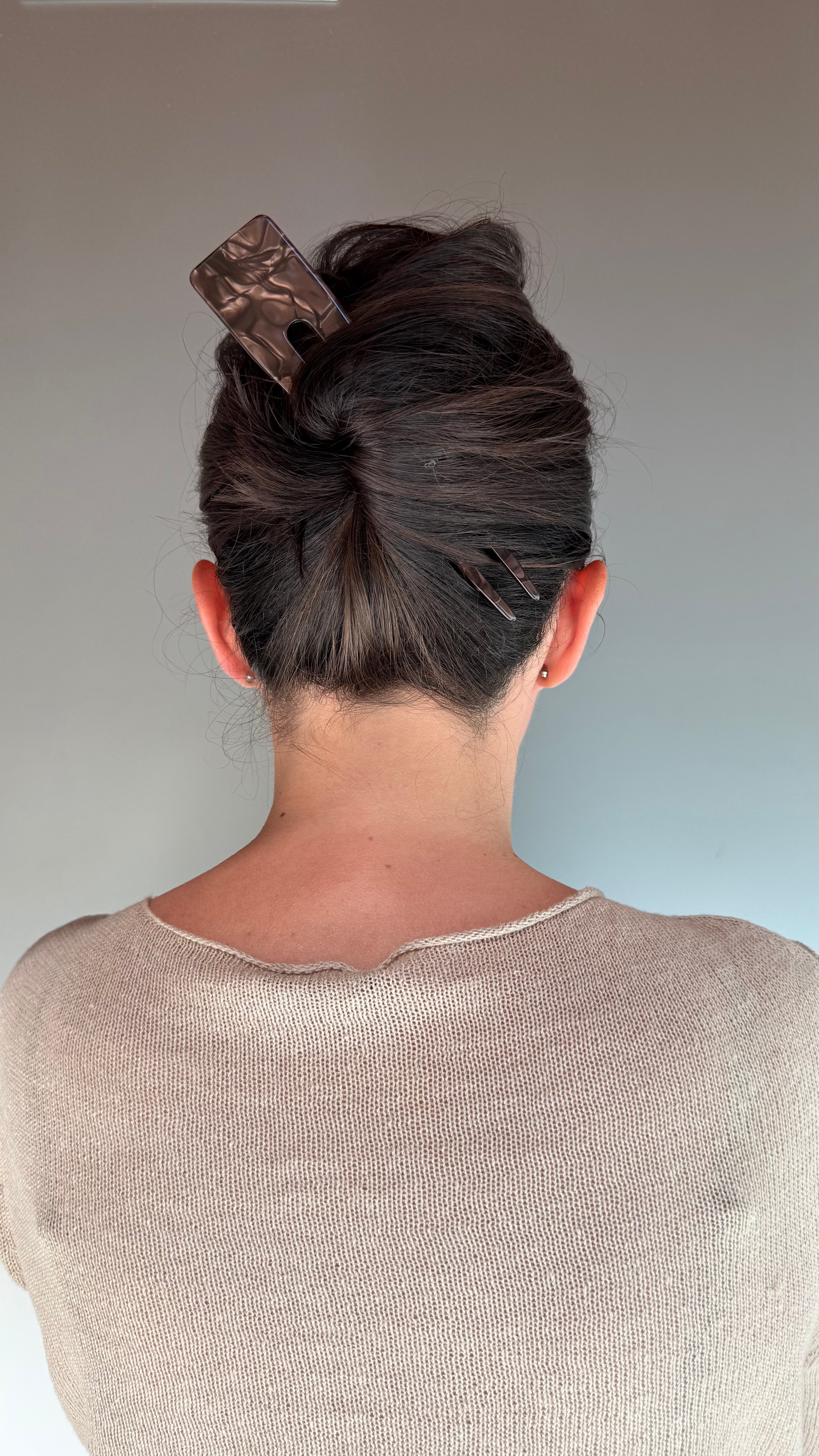 ჩვენი თმის სამაგრების კოლექციის უახლესი დამატება. დიდი და ძალიან გლუვი სამაგრი, რომელიც სწრაფად და მარტივად შეგიძლიათ გააკეთოთ ვარცხნილობა. ყველა აქსესუარი ხელით მზადდება იტალიაში, ოჯახის სახელოსნოში, Mazzucchelli1849-ის პრემიუმ კლასის აცეტატისგან, რომელიც გამოიყენება სათვალეებში და უზრუნველყოფს უპრეცედენტო სიგლუვეს. აცეტატის ფერის სქემა ყოველ სეზონზე იცვლება ტენდენციების ასახვის მიზნით.
